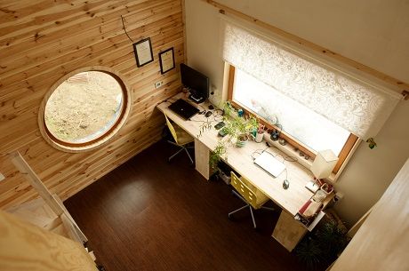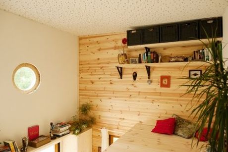 Majitelia mobilného domu od začiatku stavby vedeli, že budú limitovaní priestorom, hmotnosťou a flexibilitou materiálu. Stavili na prírodné materiály, rozumne zohľadňujúce estetické aj zdravotné hľadisko. Príkladom je korková podlaha pohlcujúca pachy či drevené trámy kombinované so sadrokartónovými doskami, ktoré spolu vytvárajú harmonický kontrast.