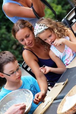 Keďže ju často so sebou beriem, na jej obrázkoch sa objavujú tancujúce tehuľky s tancujúcimi detičkami v brušku. V hre si vypisuje zoznamy detí, vytvára skupiny podľa veku, vymýšľa tance, divadielka, tvorivé dielničky, „telefonuje“ – dáva informácie vymysleným maminkám o kurzoch…
