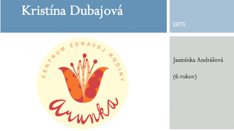 Po materskej dovolenke sme s kolegynkami založili v Pezinku pri Bratislave Centrum zdravej rodiny ARUNKA, ktoré moje aktivity zastrešuje, hoci som sa po materskej dovolenke vrátila k živnosti.