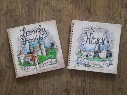 Omáľovanky sú tematické- slovenské hrady, zámky a kaštiele. Tvorí ich 40 listov, 24x24cm, v tvrdej väzbe so špirálou. Najťažší na celej tvorbe bol výber hradov. Väčšina slovenských hradov sú totiž zrúcaniny, ktoré je ťažko identifikovať. Zámkov bolo len desať, ale kaštieľov máme našťastie veľa. Preto som sa snažila vybrať tie najkrajšie.