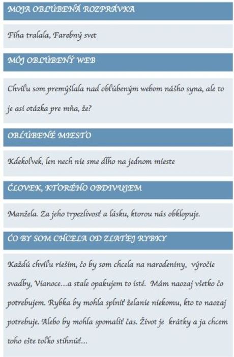 Čo robíte, keď sa nestaráte o dieťatko, o rodinu, o manžela a o prácu (ak vás napadne, že nič iné nestíham, tak pridajte k tomu, čo by si chcela robiť, ale ešte nebolo kedy).