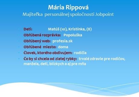 Mária Rippová, mama Matúša a Kristínky, pochádza z Bratislavy, ale má moravské korene. Vyštudovala psychológiu a od roku 1998 pracuje v oblasti ľudských zdrojov. V roku 1999 založila a odvtedy aj vedie personálnu spoločnosť Jobpoint.