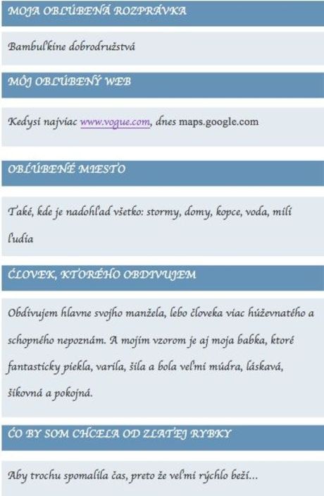 Čo robíte, keď sa nestaráte o deti, o rodinu, o manžela a o prácu (ak vás napadne, že nič iné nestíham, tak pridajte k tomu, čo by ste chceli robiť, ale ešte nebolo kedy)?