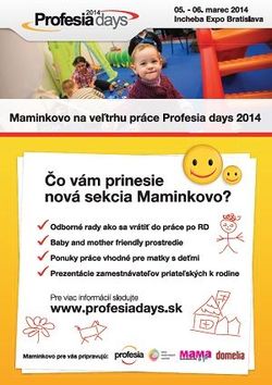 Najbližší ročník veľtrhu práce Profesia days sa bude konať už 5. – 6. marca 2014 v Incheba Expo Bratislava. Veľtrh však prinesie novinku – špecializovanú sekciu pre rodiny s názvom Maminkovo, kde nájdu mamičky i oteckovia všetko potrebné pre znovuzaradenie sa do pracovného života. Odborným partnerom sekcie Maminkovo je Únia materských centier. Príďte sa poradiť s odborníkmi na Profesia days, ako si hľadať prácu, keď sa vraciate na pracovný trh po rodičovskej dovolenke.