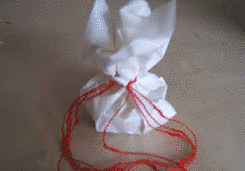 Mydielka potom zabalíme do bieleho preklepového papiera a previažeme červenou šnúrkou. Môžeme na ňu pridať menovku alebo srdiečko.