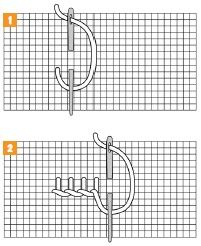 1. Keď pri vyšívaní musíme postupovať zdola nahor, začíname prvý rad na pravej strane a pokračujeme ďalej doľava. Vychádzame z pravého horného radu. Po odrátaní troch nití dole a troch nití doľava pichneme ihlu dole. Potom na rubovej strane odrátame tri nite nahor a vpichneme späť do lícnej strany jemnej vyšívacej tkaniny. Vo vyšívaní pokračujeme do požadovanej dĺžky.