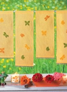 Nápad. Motýle, ktoré sú na záclone, môžeme vyšiť aj na ozdobný vankúš, aby dekorácie v izbe spolu ladili. Ak na vankúš vyberieme inú farbu, prispôsobíme aj farby záclony.