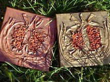 Na záver budeme obrázok maľovať. V malom množstve transparentného paverpolu rozmiešame trochu práškovej farby pavercolor a pomocou plochého štetca nanášame na vytvorený námet, pokrývame najmä vrchné reliéfne časti. Použitím pavercoloru, dosiahneme nádherné kovové odtiene medenej, zlatej, bronzovej a červenohnedej farby, ale môžeme ich nahradiť aj akrylovými farbami pre pestrejší efekt.