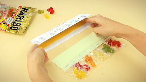 Na jeho výrobu vám bude stačiť papier, malé vrecúška, cukríky HARIBO a zošívačka. A nebojte sa, výroba vám nezaberie viac ako 15 minút!