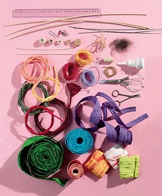 - Nožnice; rýchloschnúce, extra silné disperzné hobby lepidlo v plastovej tube; krajčírsky meter; drôt s hrúbkou 1,2 mm; drevená guľôčka s veľkou dierkou; pedig (rotang), prípadne špajdľa; alobal; špendlík; korková zátka; hnedá plsť (chumáč vlny); ni na viazanie alebo rafia.