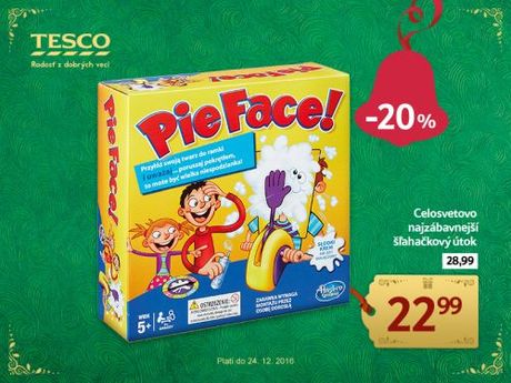 Celosvetový úspech a popularita spoločenskej hry Pie Face konečne dorazila aj na Slovensko. Dokonalá hra pre všetky deti, ktoré sa rady smejú, zaručuje kopec zábavy aj dospelým.