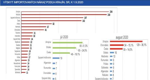 Kým v júli to nebolo až tak dramatické – dokopy 6 prípadov (z Ukrajiny (83), Srbska (65), Česka (48), v auguste to bolo 54 prípadov z Chorvátska, čo predstavuje 15 % zo všetkých zavlečených aktívnych prípadov ochorení. Z Česka máme 50 nových prípadov za august, Ukrajina, samozrejme, vedie, so 129 prípadmi.