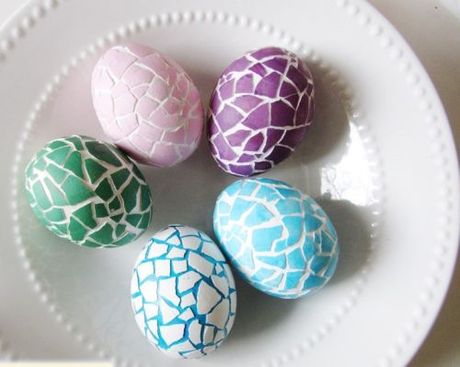 Jednoduché a efektné, len budete mať väčšiu spotrebu vajíčok. Časť z nich musia byť vyfúknuté vajíčka. Tie zafarbíte v rôznych farbách a následne škrupinku rozlámete na malé časti.