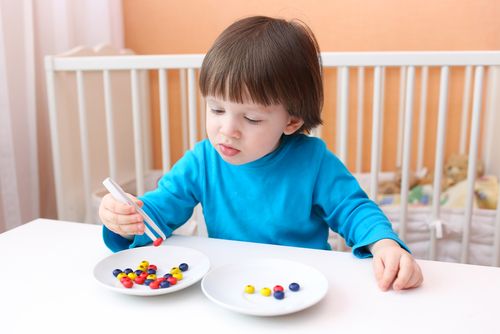Zrejme doma nájdete mozaikové stavebnice, či korálky – oboje je skvelé na posilňovanie drobných svalov ruky. Úlohou dieťaťa je napr. poskladať obrázok mozaiky len s pomocou pinzety, bez využitia prstov.