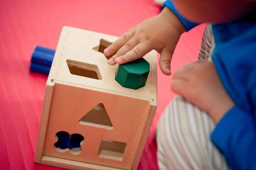 Použite klasické vkladačky alebo do obyčajnej papierovej škatule vyrežte otvory zodpovedajúce kockám (rôznym tvarom), ktoré máte doma.