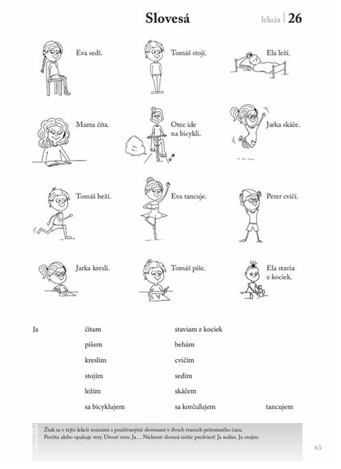 ktorá v sebe kombinuje príručku pre učiteľov a učebnicou plnú pracovných listov pre žiakov. Pomôcka obsahuje 39 kapitol, každá pozostáva z lekcie a pracovného listu. Témy v publikácii vychádzajú z každodenného života detí. Lekcie a pracovné listy sú koncipované jednoducho a zrozumiteľne a žiaci cudzinci sa učia pomocou hry a hrových aktivít. Publikáciu využijú nielen samotní rodičia, ale aj školy, školské kluby, domácnosti s dieťaťom z cudziny a samotné deti v rámci samoštúdia a príprav do školy.