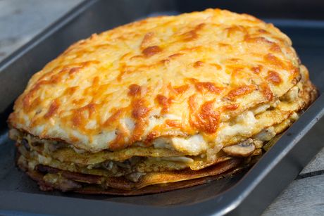 Ak sa vám lepí na prsty, použite ďalšiu múku. Na dobre pomúčenej doske rozvaľkáme cestíčka na tenké placky a tie pražíme na suchej panvici z oboch strán.