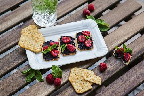 V časoch, kedy frčí slaný karamel a sladkosti „na slano“, určite oceníš zdravú AVO(NE)NUTELLU, tmavú nátierku z avokáda, ktorá sa skvelo dopĺňa so slanými krekermi a šťavnatými malinami. Na ozdobu sa dajú použiť aj jahody.