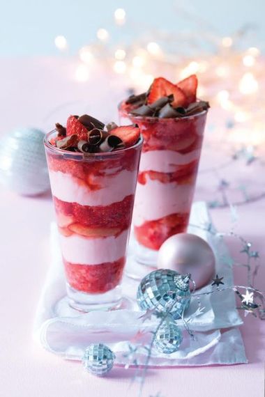 - Do pohárov striedavo lejeme puding, jahodovú zmes a piškóty namočené v ovocnej šťave.