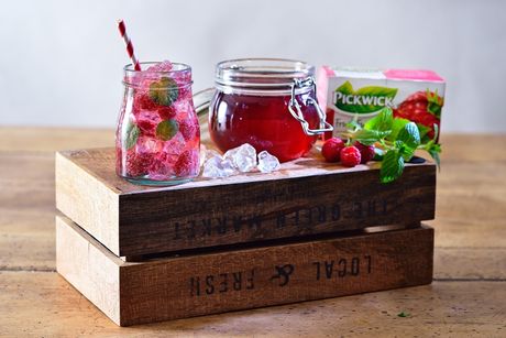 Zalejte vrecúška čaju Pickwick Brusnice s malinami 500 ml horúcej vody a nechajte vylúhovať 6-8 minút. Dajte vychladiť.
