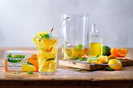 Vrecúška čaju Pickwick Citrusy s bazovým kvetom zalejte cca 500 ml horúcej vody a nechajte vylúhovať 6-8 minút. Oslaďte bazovým sirupom a dajte vychladiť.