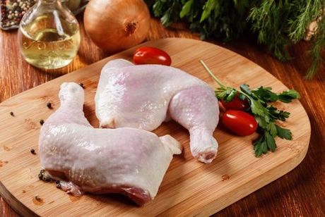 Zemiaky som osolila a kuracie stehná som okorenila zmesou korenín Pečené kura od Vitany.