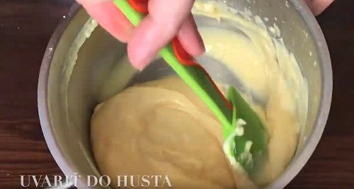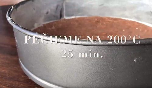 Ingrediencie na korpus spolu vymiešame a nalejeme do tortovnice. Pečieme 20-25 minút.