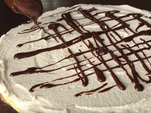 Všetky tieto dobré veci spolu vymiešame na hladký krém a navrstvíme ho na stuhnutý žltý krém. A šupneme to na noc, alebo aspoň pár hodín do chladničky.