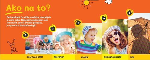 „V škôlke, ktorá dbá na SunSafe zásady bezpečnej hry v exteriéri, sa dieťa dozvedá, aká je pokožka dôležitá, učí sa vnímať, ako na ňu pôsobia vonkajšie vplyvy a učí sa správne správať v exteriéri a chrániť sa pred slnkom. Pomáhajú nám k tomu najmä vhodne zvolené aktivity, ktoré by si mala osvojiť každá škôlka.
