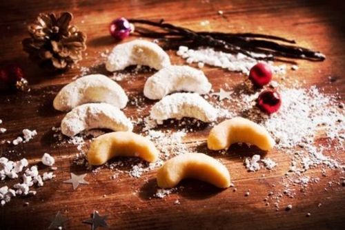 Všetko vymiešame a vložíme do chladničky na 30 minút. Vygúľame šúľok, ktorý pokrájame na menšie kúsky a tie vytvarujeme na rožteky. Pečieme pri 180 stupňoch asi 10 minút. Po dopečení posypeme cukrom s vanilkou.