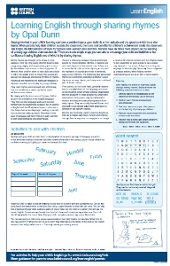 Ďalší pracovný list zo série LearnEnglish Family hovorí o tom, aké významné je pomáhať dieťaťu pri učení sa cudzieho jazyka spoločným učením sa riekaniek.