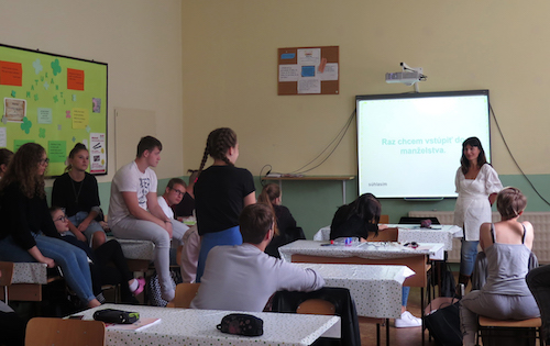 Pre chlapcov aj dievčatá. Väčšinou prednášam v zmiešanej triede. Je pre mňa udivujúce, že síce túžia po svadbe, pevnom zväzku, vidia manželstvo ako hodnotu, no nevidia, že to, čo robia teraz, môže ich vlastný sen sabotovať. Napríklad porno vie veľmi skriviť pohľad na intimitu, a to neskôr bude ich manželstvo komplikovať. Je otázne, či to súvisí s vekom alebo skratkovitým rozmýšľaním, na ktoré si zvykli. Alebo ich možno nikto nepozve do úvahy, že to, čo robia vo vzťahoch, ich neskôr ovplyvní. Toto zatiaľ skúmam.