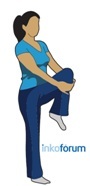 Stoj. Pokrčíme jednu nohu. Uchopíme ju pod kolenom a pritiahneme