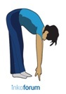 Stoj, nohy prekrížené. Predkláňame sa a pokúšame sa dlaňami dotknúť zeme. Predkláňame sa pomaly, stavec po stavci. A pomaly sa vraciame do základnej polohy.