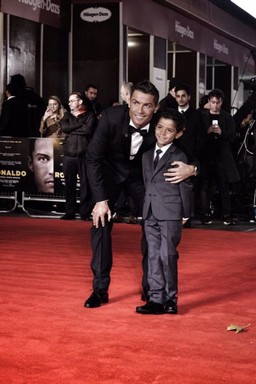 Portugalský futbalista Cristiano Ronaldo sa nedávno objavil v Londýne na premiére svojho dokumentárneho filmu. Jeho 5-ročný syn, Cristiano Ronaldo Junior, zladený s otcom od účesu po opätky…