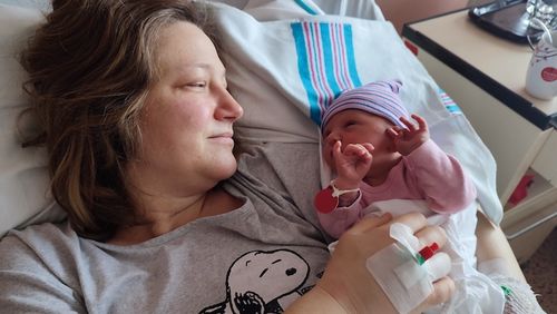 Do ružinovskej pôrodnice som musela odísť už 17. decembra, čiže zhruba týždeň pred termínom, keďže mi zistili preeklamsiu. Dochádza pri nej k zúženiu ciev, čo ohrozuje matku i dieťa. Tesne pred odchodom z domu mi odišla zátka a o deň neskôr aj plodová voda. V nemocnici sa mi trochu zlepšil krvný tlak, ktorý je pri preeklamsii veľmi vysoký. Jediný problém sa zdalo byť, že som sa po odtečení vody vôbec neotvárala, a tak lekári rozhodli o neplánovanom cisárskom reze. Ten prebehol v poriadku a bola som odvezená na popôrodné oddelenie. Muž šťastný odišiel domov.